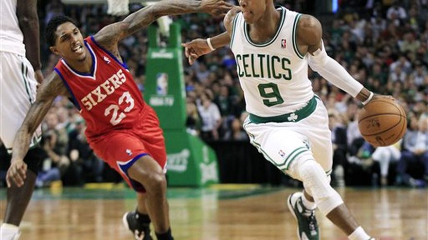 Kevin Garnett anotó 29 puntos — su marca personal en el año— y capturó 11 rebotes el sábado, para dar a los Celtics de Boston la victoria sobre los 76ers de Filadelfia en el primer partido de la serie semifinal de la Conferencia Este. Rajon Rondo tuvo 17 asistencias, 13 puntos y 12 rebotes, el octavo triple doble de su carrera. Corrió toda la cancha para recibir el pase y driblear los últimos 3.4 segundos del partido. La serie sigue el lunes en Boston y luego va a Filadelfia para los partidos tres y cuatro. Andre Iguodala anotó 19 puntos y Evan Turner tuvo 16 puntos y 10 rebotes para los 76ers.