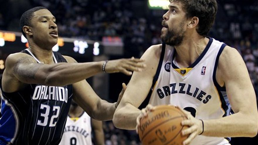 Marc Gasol convirtió 22 puntos, Rudy Gay agregó 20 y los Grizzlies de Memphis amarraron el jueves la 4ta posición en la Conferencia Oeste tras vencer 88-76 al mermado Magic de Orlando. O.J. Mayo anotó 15 puntos y Zach Randolph, en su regreso como titular, terminó con 13 tantos y 12 tableros por Memphis, que sumó seis victorias consecutivas y la 11ra en 13 partidos. Los Grizzlies también impusieron la mejor racha de su organización con 11 triunfos seguidos como locales, y ahora comenzarán la postemporada el domingo en casa contra los Clippers de Los Angeles. La victoria de Memphis relegó a los Clippers a la 5ta preclasificación. Hedo Turkoglu, al jugar por primera vez en 10 encuentros debido a una fractura en la cara, encabezó al Magic con 18 puntos tras conectar siete de 13 lanzamientos. Justin Harper anotó 16 unidades y Von Wafer agregó 11. El Magic descansó a todos sus titulares luego de ganar la 6ta preclasificación en el Este. La cuarta posición significó el mejor fin de temporada en la historia de la organización de Memphis, y la primera vez que los Grizzlies logran la ventaja de casa en la primera ronda de postemporada.