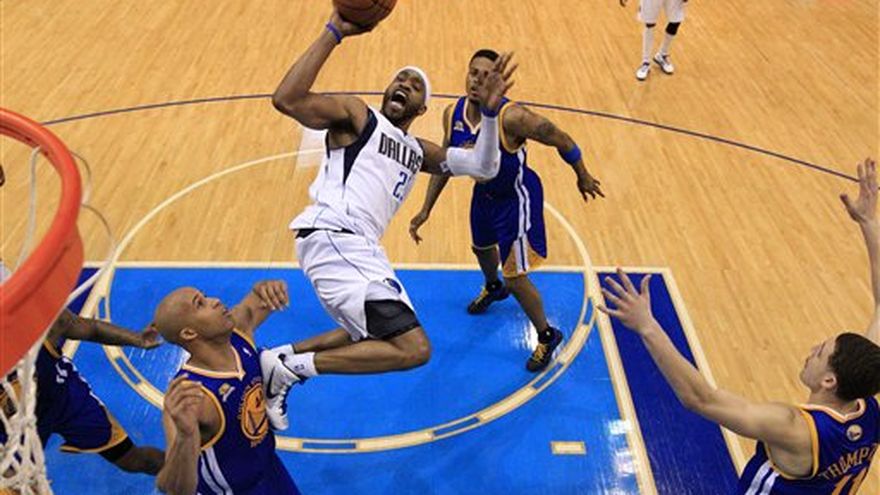 Vince Carter logró 19 puntos, entre ellos ocho consecutivos al inicio del último cuarto, y unos Mavericks de Dallas ya clasificados a la postemporada derrotaron el viernes por 104-94 a los Warriors de Golden State. La racha personal de Carter terminó cuando dio un pase a Jason Terry, quien encestó un triple que amplió la ventaja de Dallas a 87-75 a nueve minutos del final. Fue el último partido en casa de temporada regular para los campeones defensores de la NBA, que se clasificaron el jueves a la postemporada sin jugar siquiera. Los Mavericks avanzaron por 12da ocasión consecutiva a la postemporada por la sexta derrota consecutiva de Houston en Nueva Orleáns la noche después de que los Rockets cayeran ante Dallas. Brandan Wright logró 17 puntos para Dallas, que terminó con foja de local de 23-10, en tanto que Dirk Nowitzki y Delonte West consiguieron 16 unidades cada uno y Shawn Marion 14. Klay Thompson, uno de cuatro novatos titulares de Golden State, fue el máximo encestador de los Warriors con 26 puntos. Brandon Rush consiguió 20 unidades tras acertar nueve de 12 disparos. Dallas, sexto en la clasificación de la Conferencia del Oeste, termina la temporada regular con los partidos contra Chicago el sábado y Atlanta el próximo jueves.