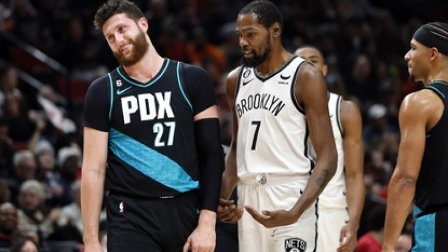 El astro Kevin Durant, autor de 35 puntos, guió este jueves a los Brooklyn Nets en una reñida victoria de 109-107 sobre los Portland Trail Blazers en uno de los tres partidos programados para la jornada de la NBA.