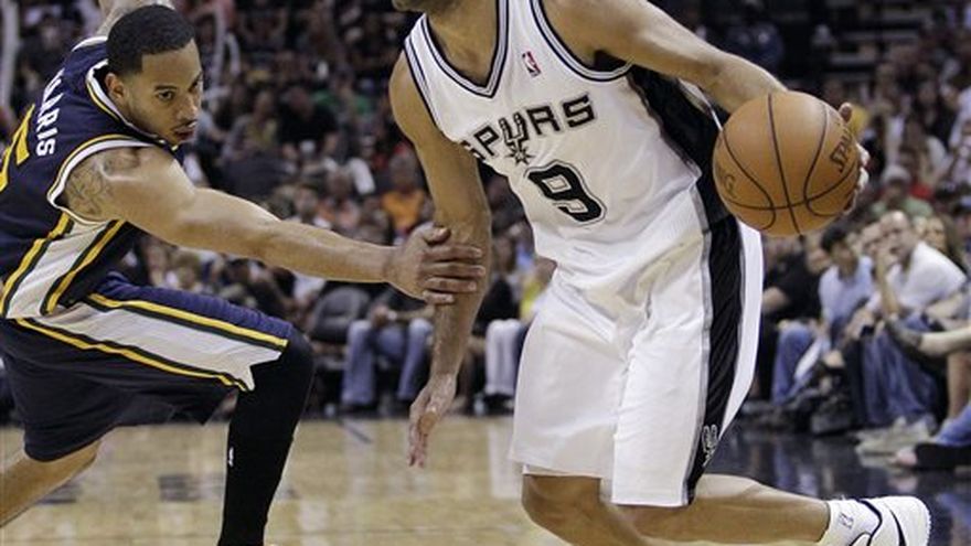 Tony Parker anotó 28 puntos y los Spurs de San Antonio vencieron el domingo 106-91 al Jazz de Utah en el duelo inicial de la eliminatoria por la primera ronda de los playoffs de la NBA. Tim Duncan agregó 17 unidades y 11 rebotes, ayudando a los Spurs a evitar otra decepción al arrancar una postemporada. El equipo ganó el partido inaugural de una serie de playoff por primera vez en cuatro años. A pesar de jactarse de obtener nuevamente el primer lugar de la preclasificación, San Antonio no había ganado el primer partido en sus últimas seis series de postemporada, incluido con el cual inició una impactante eliminación en la primera ronda el año pasado. Paul Millsap encabezó la ofensiva de Utah con 20 puntos. El Jazz se mantuvo cerca en el marcador hasta el tercer período, cuando el equipo líder de la NBA en anotaciones desde la distancia de tres puntos comenzó a sepultar a Utah con tres disparos atrás del arco en un lapso de dos minutos para terminar el cuarto. El argentino Manu Ginóbili aportó siete puntos con cuatro asistencias Los Spurs han ganado 11 partidos consecutivos. El segundo duelo de la serie será el miércoles en San Antonio.