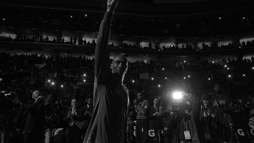 Bryant fue acompañado en el centro del campo por Gregg Downer, el entrenador que tuvo en el colegio Lower Merion, de Filadelfia, donde estudió, y del gran Julius Erving, para recibir el uniforme con el número 24 enmarcado de su etapa de estudiante.