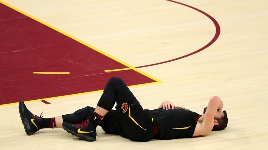 Love tuvo que dejar a sus compañeros de equipo con tan solo cinco minutos de juego después de una violenta colisión con el novato de Boston Jayson Tatum.