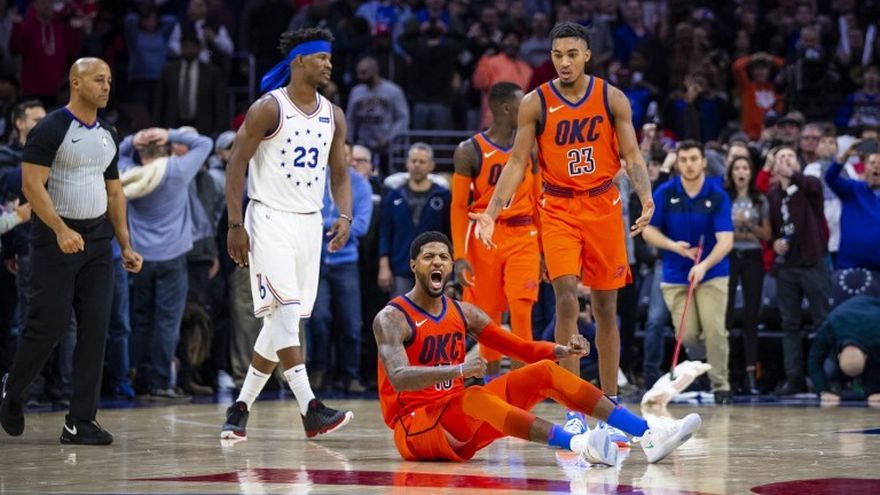 El alero Paul George, con una jugada de cuatro puntos a falta de cinco segundos para el final del encuentro, salvó este sábado a los Oklahoma City Thunder en el triunfo 117-115 ante los Philadelphia 76ers.