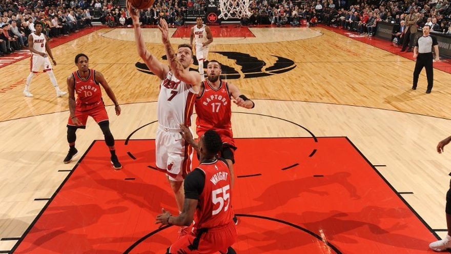 El pívot titular Hassan Whiteside también logró un doble-doble de 13 puntos y 15 rebotes para los Heat, que habían perdido sus cinco visitas anteriores a Toronto.