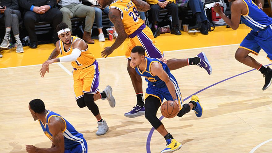 Con la simple fórmula de neutralizar a Stephen Curry y Kley Thompson desde el arco de triples, y presionar por todo el terreno para obligar las pérdidas de balones, los sotaneros Lakers le dieron una lección de humildad a los Warriors.