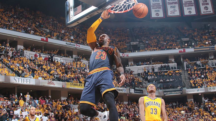 James aportó un triple doble de 41 puntos, 13 rebotes y 12 asistencias que permitió a los Cavaliers completar remontada de 26 puntos y ganar de visitantes 111-119 a los Pacers de Indiana en el tercer partido de la eliminatoria de primera ronda de playoffs de la Conferencia Este, que dominan por 3-0 al mejor de siete.