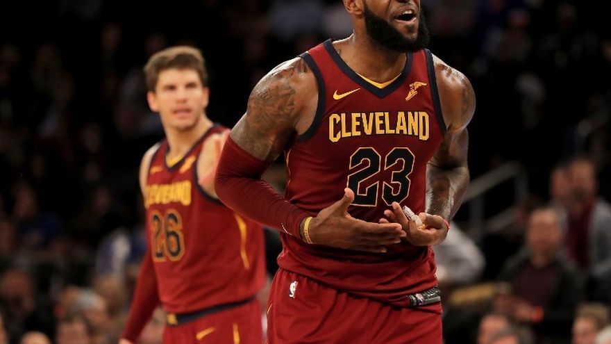 El astro LeBron James terminó con 23 puntos y 12 asistencias y su compañero Kyle Korver lo hizo con 19 de sus 21 tantos en el último cuarto para que los Cleveland Cavalier vencieran este lunes en la NBA a los New York Knicks con apretado marcador de 104-101.