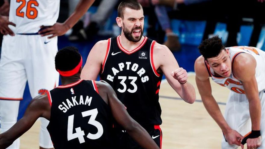 Traspasado por los Grizzlies de Memphis, Marc Gasol aportó 7 puntos en los 19 minutos que estuvo en pista en su estreno con los Raptors ante los Knicks de Nueva York (99-104).