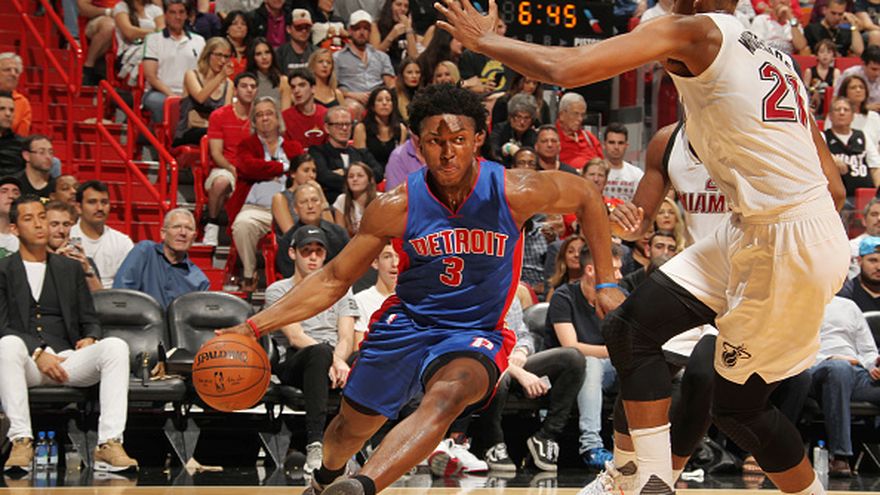 El escolta Kentavious Caldwell-Pope encestó la canasta que decidió el triunfo de visitantes (92-93) de los Pistons de Detroit ante los Heat cuando restaban 55 segundos para el fin del tiempo reglamentario.