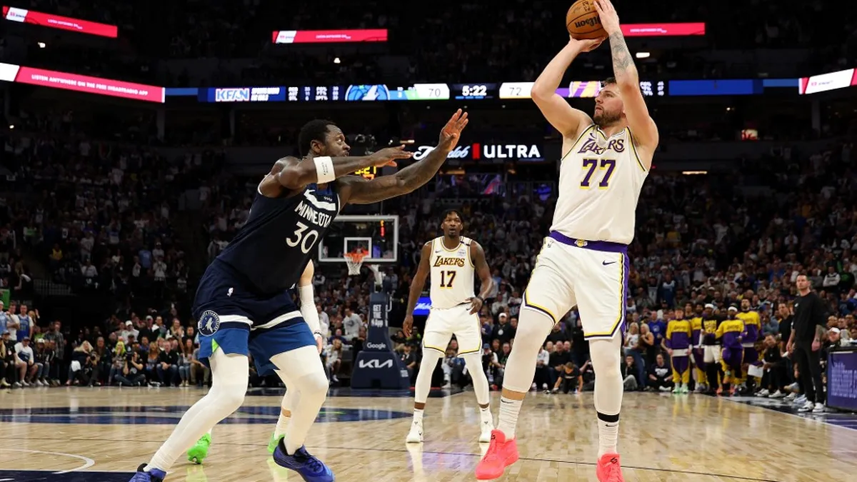 Para los Lakers, los 38 puntos de Doncic y los 27 tantos y 12 rebotes de LeBron fueron insuficientes ante los jóvenes y hambrientos Timberwolves que comanda Anthony Edwards, que llegó a 43 puntos.