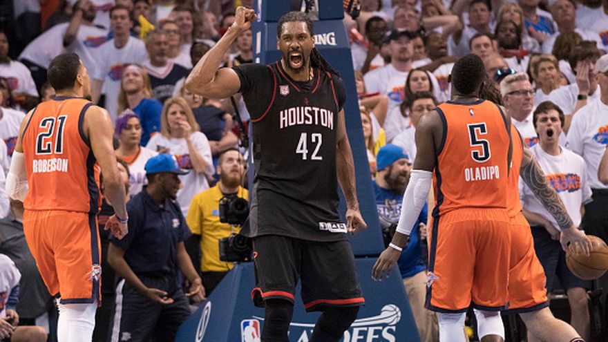 El pívot brasileño Nené Hilario se convirtió en el protagonista de la jornada de playoffs de la NBA al completar partido perfecto en los tiros a canasta y darle a los Rockets de Houston un triunfo de oro.