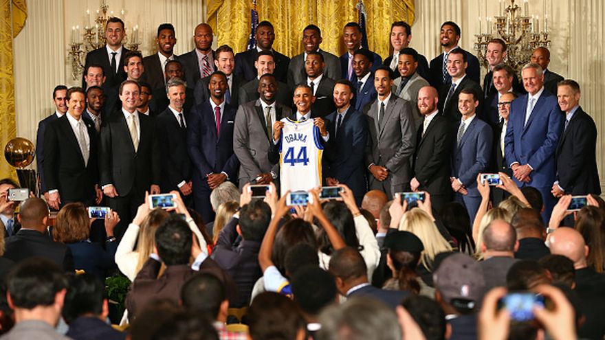 El presidente de Estados Unidos, Barack Obama, un gran fanático del baloncesto y de los Bulls de Chicago, recibió hoy en la Casa Blanca a los campeones de la NBA, los Warriors de Golden State, y al margen de bromear, calificó su juego como algo precioso.