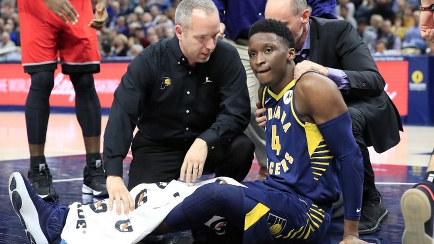 Oladipo se lesionó en una acción defensiva sobre el camerunés Pascal Siakam al final del segundo cuarto contra los Toronto Raptors.