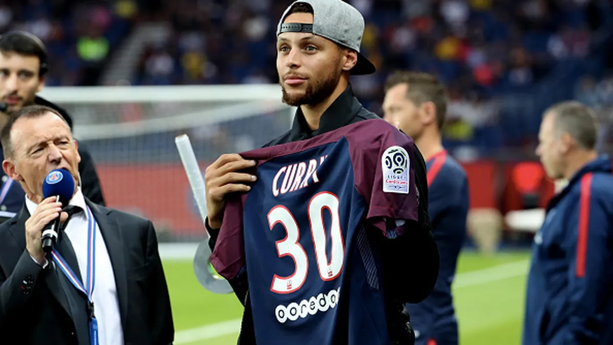 El club parisino anunció la presencia de Curry por megafonía, al que regaló una camiseta con el número 30, el mismo que usa en su equipo Golden State Warriors.