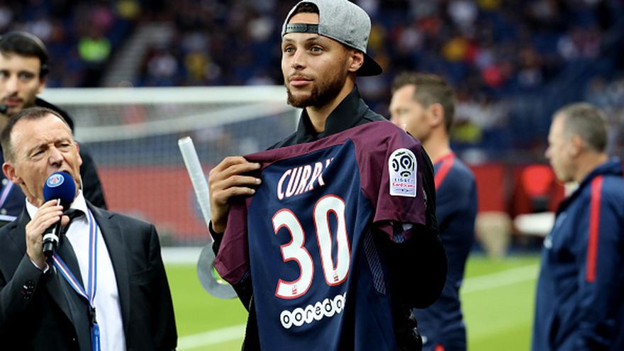 Stephen Curry, doble campeón de la NBA, fue el invitado de honor en el estadio del Parque de los Príncipes, donde el París Saint Germain (PSG) le homenajeó antes de medirse al Saint-Étienne de Óscar García en la cuarta jornada de Liga francesa.