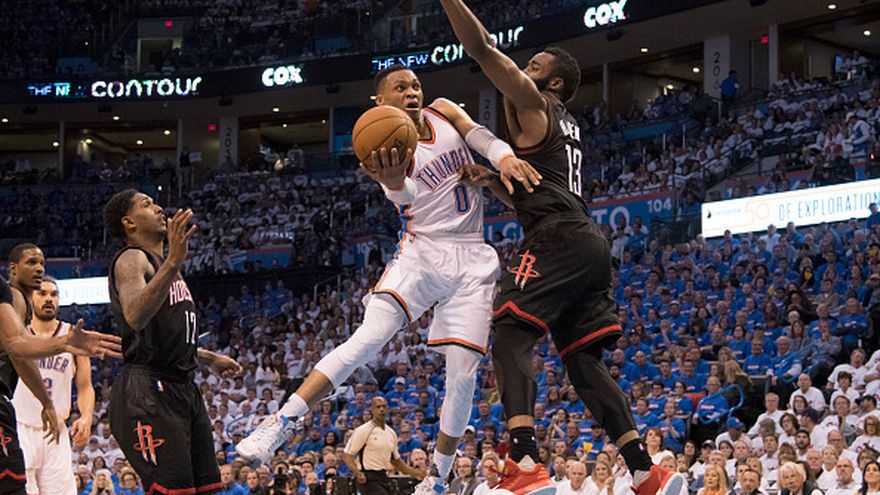 Westbrook logró el triple-doble, su segundo seguido en partido de fase final, algo que nadie había conseguido hasta ahora, y los Thunder vencieron por 115-113 a los Rockets de Houston para disminuir su desventaja (1-2) en la serie que disputan al mejor de siete.