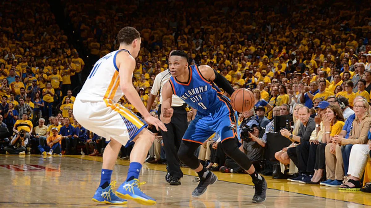 Los Oklahoma City Thunder se apoyaron una vez más en su astro anotador Russell Westbrook y vencieron este lunes a los Golden State Warriors 108-102 para salir al frente 1-0 en la serie final de la Conferencia Oeste de la NBA.