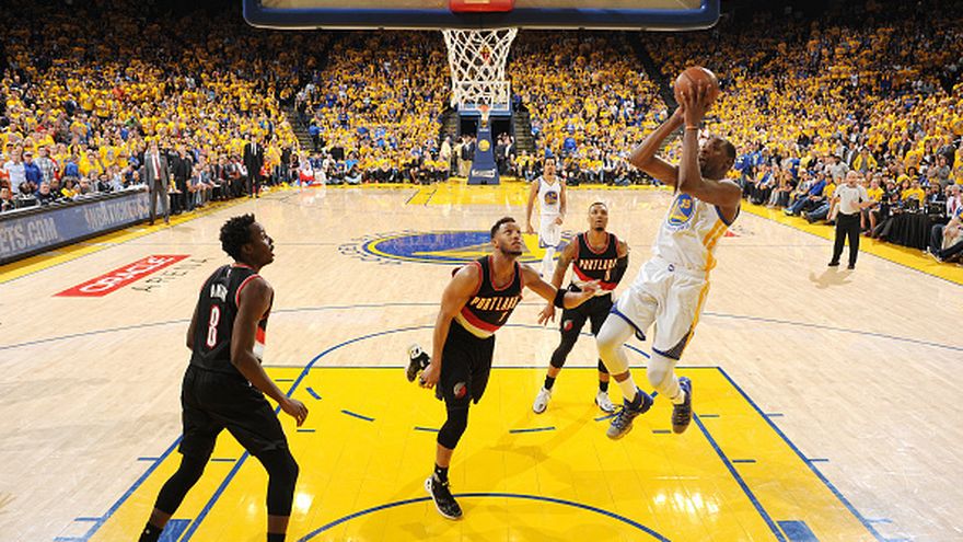 Con soberbia actuación ofensiva del astro Kevin Durant y Stephen Currry, los Golden State Warriors salieron este domingo al frente 1-0 en su primera ronda de playoffs en la Conferencia Oeste al vencer 121-109 a los Portland Trail Blazers.