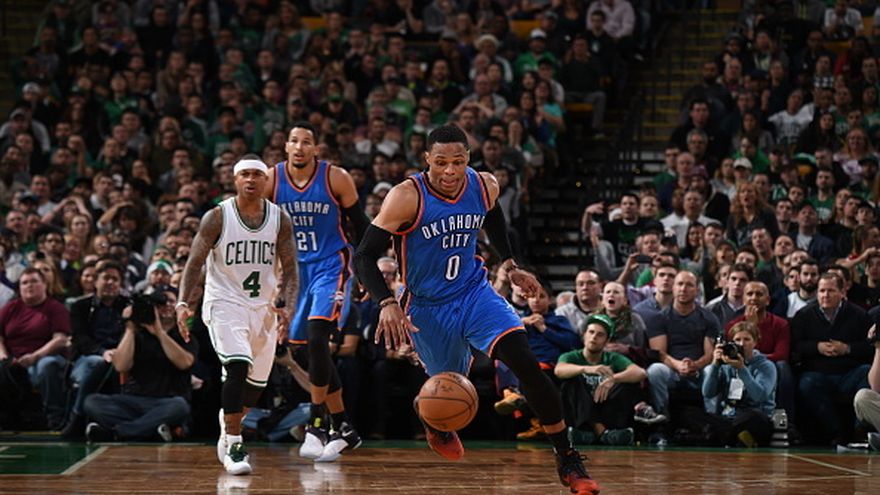 Westbrook siguió siendo el "Rey" de los "triple-dobles" al totalizar 45 puntos, 11 rebotes y 11 asistencias, para guiar a los Oklahoma City Thunder en una victoria de 117-112 sobre los anfitriones Boston Celtics.