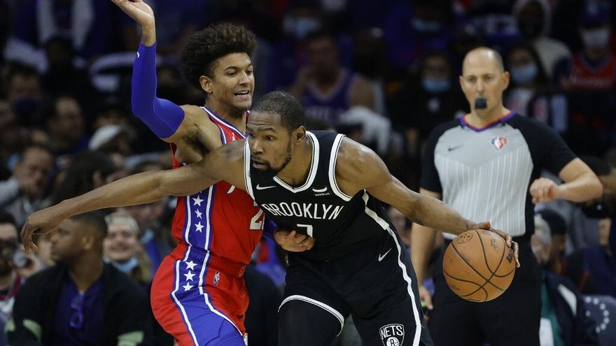 Con un triple doble de Kevin Durant, los Brooklyn Nets sellaron el viernes su primer triunfo de esta temporada en su visita a la cancha de los Philadelphia 76ers, donde Joel Embiid pidió a los aficionados que apoyen a su compañero Ben Simmons.