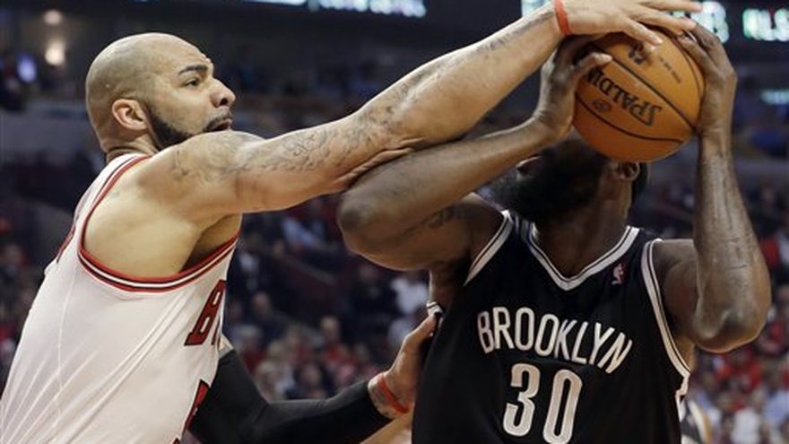 Deron Williams, Brook López y Joe Johnson anotaron 17 puntos cada uno y los Nets de Brooklyn evitaron de nuevo la eliminación al derrotar a unos mermados Bulls de Chicago 95-92 el jueves para empatar la serie de primera ronda de playoffs de la NBA a tres victorias por bando. La serie regresa a Brooklyn para el séptimo y decisivo partido, a disputarse el sábado. El ganador enfrentará al Heat de Miami en segunda ronda. "Simplemente creímos", dijo Johnson. "Creímos en nosotros mismos. En el entrenamiento (del miércoles), lo hablamos varias veces. Más que nada, se trató de quién lo deseaba más". Los Bulls dieron pelea hasta el final pese a no contar con Luol Deng y Kirk Hinrich. Un enceste de Nazr Mohammed redujo la ventaja de los Nets a 93-92 con 25,2 segundos restantes. Nate Robinson luego cometió falta sobre Andray Blatche, que había fallado un tiro libre poco antes. Esta vez, encestó ambos para dar a Brooklyn ventaja de tres tantos a 19,2 segundos del final. Los Bulls tuvieron una oportunidad de empatar el juego, pero Marco Belinelli falló un tiro de tres puntos y Joakim Noah pisó fuera con sólo seis segundos por jugar. Sin embargo, Chicago aún tenía una oportunidad. Noah disputó el balón con Williams tras pisar fuera, ocasionando un balón lanzado al aire con 3,6 segundos. Johnson controló el balón, y los Nets resistieron. Gerald Wallace agregó 15 puntos mientras Brooklyn sumaba su segunda victoria consecutiva. "Somos un equipo de guerreros", dijo Noah. "Seguimos recibiendo golpes al rostro, pero contraatacamos. Me siento orgulloso de este equipo". Sólo ocho equipos de NBA han remontado de una desventaja de 3-1 para llevarse una serie a ganar cuatro de siete encuentros, pero los Nets están a punto de lograrlo. "La mayoría de la gente nos habría descartado tras una desventaja de 3-1", dijo Blatche. "Pero seguimos luchando. Mostramos que tenemos mucho corazón. Ahora que está empatada (la serie), tenemos que salir con la misma hambre, la misma actitud, a terminar esto". Los Bulls se mantuvieron cerca a pesar de que Hinrich se perdió su segundo juego consecutivo con una pantorrilla izquierda magullada y Deng no jugó por presentar síntomas similares a los de la gripe, lo que obligó al entrenador Tom Thibodeau a realizar cambios en la alineación. Belinelli inició como escolta para terminar con 22 puntos y Jimmy Butler se pasó a la posición de alero. Robinson fue titular por segundo partido seguido en lugar de Hinrich y aportó 18 tantos. Butler contribuyó con 17 puntos, siete rebotes y seis asistencias. Noah agregó 14 tantos y 15 rebotes, mientras que Carlos Boozer registró 14 puntos y 13 rebotes.