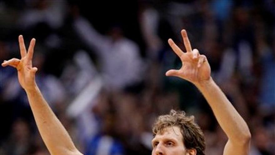 Dirk Nowitzki anotó 27 puntos y Brandan Wright, ex jugador de Golden State, contribuyó con 16 anotaciones y nueve rebotes, llevando el jueves por la noche a los Mavericks de Dallas a una victoria de 112-103 ante los Warriors 112-103. Jason Kidd aportó 12 asistencias, 10 rebotes y nueve puntos para llevar a los Mavericks a una ofensiva de 19 puntos, para colocarse a un partido y medio después de Memphis en pos de la quinta posición entre los clasificados de la Conferencia Oeste. Los Grizzlies perdieron 107-97 ante San Antonio en un partido de la noche previa. Los Mavericks tienen sólo medio partido de ventaja sobre Denver y Houston. David Lee anotó 30 puntos y recuperó ocho rebotes y el novato Klay Thompson completó 24 puntos, ocho asistencia y siete rebotes para los Warriors. Golden State ha perdido tres partidos consecutivos y ha quedado fuera de competencia.