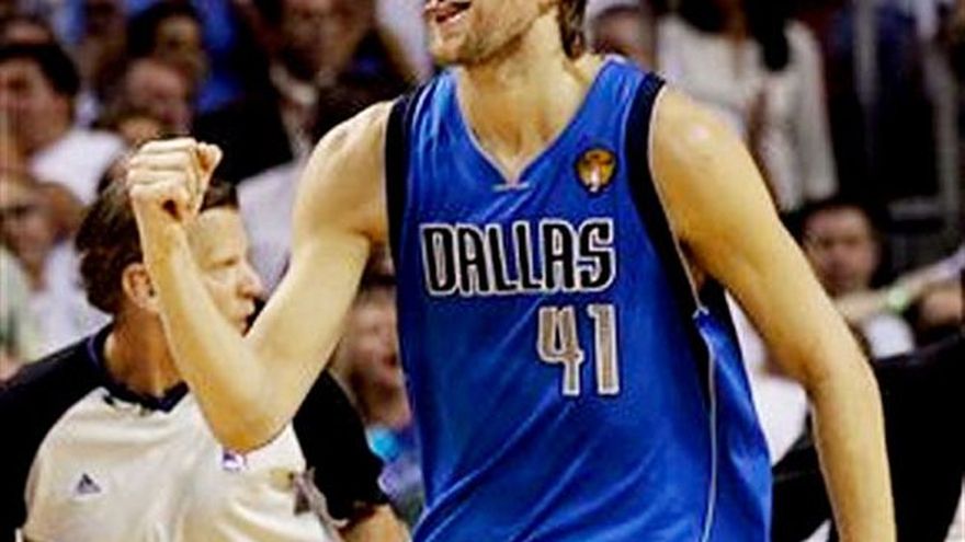 Dirk Nowitzki se consagró como el jugador más valioso de la final de la NBA tras el inmenso aporte de clase y coraje que ofreció al conducir a los Mavericks de Dallas a su primer campeonato. Aunque el Nowitzki no brilló en demasía en el sexto partido, el alemán no dejó de ser vital en el triunfo. Durante la serie, sobreponiéndose a lesiones y hasta una fiebre, fue la bujía para remontar marcadores en contra de 12, nueve y cuatro puntos en las victorias anteriores de Dallas. Nowitzki, el jugador más valioso de la liga en 2007, encestó de zurda la canasta de la victoria del segundo partido, pese al desgarre de un tendón en la punta de su dedo medio, el cual sufrió en el primer duelo. Anotó 10 de sus 21 puntos en el último periodo del cuarto partido, con todo y que padecía una fiebre a causa de una sinusitis. Y en el quinto partido, una clavada suya en los últimos minutos le dio a Dallas la ventaja definitiva. Siempre clave en los momentos decisivos.