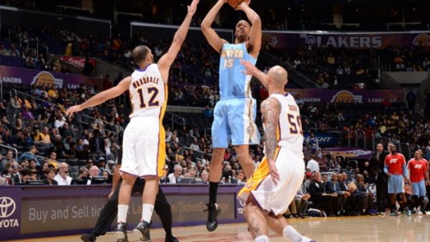 Ty Lawson anotó 20 puntos y repartió 12 asistencias, mientras que Timofey Mozgov añadió 20 unidades y capturó siete rebotes, para que los Nuggets de Denver apalearan el domingo 137-115 a los Lakers de Los Ángeles, e hilaran su segundo triunfo seguido después de sufrir ocho descalabros en fila. Nate Robinson hizo 21 unidades, mientras que Wilson Chandler y Kenneth Faried aportaron 17 tantos cada uno, por los Nuggets, que anotaron 77 puntos a los alicaídos Lakers en la segunda mitad. De manera enfática, Denver obsequió un triunfo al entrenador Brian Shaw en su primer partido de regreso en el Staples Center para enfrentar a los Lakers como entrenador. Shaw, escolta y asistente de los Lakers durante años, no recibió el empleo de entrenador tras la salida de Phil Jackson. El español Pau Gasol totalizó 25 puntos, 10 rebotes y cinco asistencias, en medio de otra ronda de rumores de que será cedido en canje por los Lakers, plagados por las lesiones, que han sido derrotados en siete de los últimos ocho compromisos.