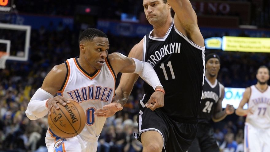 En Oklahoma City, el también estelar canastero Russell Westbrook encestó una bandeja de ventaja con 3,3 segundos por jugar para ayudar a los locales Thunder en una reñida victoria de 109-108 sobre los Brooklyn Nets.