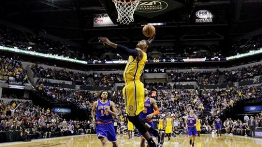 Primero el Heat, y ahora los Knicks. Los Pacers de Indiana han demostrado que son capaces de derrotar a cualquiera en la Conferencia Este en estos días. Paul George anotó siete de sus 25 puntos durante un tramo decisivo de 13-0 en el último cuarto, con lo que encabezó el jueves la victoria de los Pacers por 81-76 sobre Nueva York, que no contó con su máximo anotador, Carmelo Anthony. Indiana ganó 12 de sus últimos 15 juegos y barrió a los otros dos líderes de división de la Conferencia Este esta semana. Evidentemente los Knicks (23-12) no fueron los mismos sin su alero estelar, quien fue suspendido por un partido luego de su enfrentamiento tras el partido del lunes con Kevin Garnett, de Boston. Los Knicks terminaron el juego con el total de puntos más bajo de la temporada, y lanzaron con una efectividad de apenas 34,8% en tiros de campo y 20% en triples. Y los Pacers (22-14) aprovecharon la ausencia de Anthony con un inusual doblete, al derrotar a Miami, el campeón defensor, y a Nueva York, líder de la División Atlántica, en partidos consecutivos. Ya era hora. Los Pacers despertaron grandes expectativas, pero tuvieron problemas al comienzo de temporada mientras intentaban ajustarse a la competencia sin su máximo anotador, Danny Granger, quien todavía no ha jugado en la campaña debido a una lesión en la rodilla izquierda. Ahora están enrachados. Indiana ha ganado nueve partidos consecutivos como local, su racha más larga desde la temporada 2002-03, y su sofocante defensa limitó a los mermados Knicks a sólo tres puntos en los últimos seis minutos y medio del primer cuarto y a 11 tiros consecutivos fallados durante la primera parte del último periodo. "Hicieron lo que tenían que hacer para asegurar la victoria", dijo el entrenador de los Knicks, Mike Woodson. Nadie superó el esfuerzo del nuevo líder de Indiana. George comenzó el partido fallando sus primeros cinco tiros al aro, pero terminó acertando 10 de 24 intentos de canasta. También sumó 11 rebotes, seis robos, cinco asistencias y un bloqueo en una noche en la que el base George Hill jugó con bronquitis y el pivote Roy Hibbert salió dos veces por problemas de espalda. Pero George obtuvo una ayuda inesperada. Ian Mahinmi terminó con 13 puntos y seis rebotes, y Lance Stephenson agregó nueve puntos y siete tableros. "El (George) está alcanzando su plenitud justo frente a nuestros ojos con una actuación especial tras otra", dijo el entrenador Frank Vogel. "Encabeza nuestra defensa, que se está convirtiendo en una bestia, y nuestros chicos están adoptando esa identidad". Algo parecido les ocurre a los Trail Blazers. El advenedizo equipo de Portland no estuvo dispuesto a permitir que el Heat de Miami saliera del hoyo en que se encuentra. Wesley Matthews embocó un triple que puso adelante a Portland cuando quedaban 26.9 segundos y los Trail Blazers resistieron para derrotar 92-90 al Heat, con lo que sumaron su cuarta victoria consecutiva y la novena al hilo en el Rose Garden. Portland (20-15) tiene un registro formidable de 12-3 en los últimos 15 encuentros. "Nuestra confianza está muy elevada", puntualizó Matthews. "Jugando intensamente, jugando bien, nos estamos divirtiendo. De modo que esta es una combinación estupenda". El Heat, por su parte, ha perdido dos en fila y cinco de ocho, aunque los campeones defensores de la NBA tienen todavía foja de 23-11 y encabezan la Conferencia Este por medio juego sobre Nueva York. LeBron James anotó 15 puntos que pusieron fin a su larga racha de 54 partidos con al menos 20 tantos desde la temporada anterior. Además, fue su menor producción en los últimos 76 encuentros tanto de campaña regular como de playoffs. Pero James consiguió también 10 rebotes y nueve asistencias contra Portland. Miami estuvo al frente hasta por 13 puntos, incluyendo una ventaja de 52-39 en el medio tiempo, pero Nicolas Batum convirtió una bandeja y un tiro libre cuando quedaban 4:03 minutos para igualar el marcador en 82. Los Blazers no pudieron adelantarse y Bosh encestó un triple para poner el partido 87-84 con 1:53 por jugar. Matthews embocó un triple para igualar el juego 88-88 cuando faltaba menos de un minuto, y luego de una volcada de Chris Bosh, Matthews encestó otro triple para por fin poner arriba a los Blazers por 91-90. LaMarcus Aldridge falló el primero de dos tiros libres cuando faltaban 10.4 segundos para sellar el marcador final. En el otro partido del jueves, los Mavericks de Dallas salieron de cuatro derrotas consecutivas cuando libraron un déficit de 17 puntos para vencer 117-112 a los Kings de Sacramento en tiempo extra. O.J. Mayo consiguió 24 puntos junto con 10 rebotes y Vince Carter agregó 23 como suplente por los Mavericks.