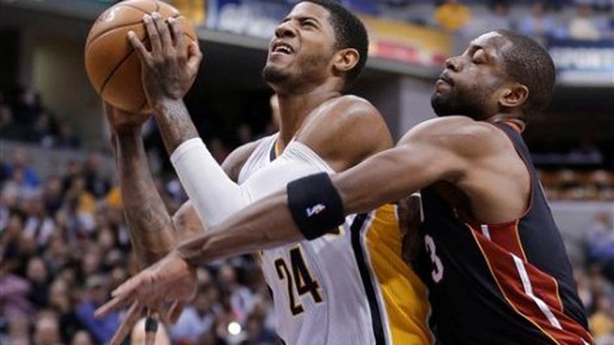 Paul George nunca tuvo la intención de desestimar la importancia de su duelo con LeBron James. "Para mí es una oportunidad ver en dónde me encuentro, ir contra uno de los mejores, o si no, el mejor de la liga", puntualizó George. "Otro reto para mí mismo es ir contra LeBron. Claro que quería darle la batalla". George aprovechó la ocasión con 29 puntos y 11 rebotes, y los Pacers de Indiana limitaron al Heat de Miami a su menor producción de la temporada al vencerlos el martes por 87-77. George fue movido de escolta a alero y, luego de ausentarse casi toda esta campaña por una lesión en la rodilla izquierda, se ha convertido en una opción primordial de anotación con Danny Granger, el principal anotador de Indiana en la temporada anterior, afuera toda la temporada por una lesión en su rodilla izquierda. El alero de 22 años de Indiana se ganó el respeto de James por la manera en que ejecutó sus nuevas responsabilidades. "Lo veo jugando con mucha confianza y muchas oportunidades", señaló James. "El mero hecho de que Danny Granger esté lesionado le ha creado esta oportunidad de mostrar lo que puede hacer. El hace todo. Fue un buen jugador el año pasado, pero no pudimos verlo porque no era un jugador destacado". David West agregó 14 puntos y 11 rebotes, mientras que Lance Stephenson encestó 13 unidades por los Pacers (21-14), que han ganado 11 de sus últimos 14 partidos. Dwyane Wade anotó 30 unidades y James registró 22 puntos y 10 rebotes por Miami (23-10), que aún tiene la mejor marca en la Conferencia Este. Esta fue la primera vez que ambos equipos se midieron desde que Miami derrotó a los Pacers en su serie de semifinales de la conferencia el año pasado. Miami se impuso 4-2. Los Pacers superaron en rebotes al Heat por 55-36 para ayudar a compensar una efectividad de sólo 36% en sus tiros de campo. "Ese fue un gran énfasis esta noche", dijo George. "Miami es un equipo que, tan buenos como son, pasan apuros para recuperarse. Sabíamos lo que venía. Sabíamos que teníamos que ganar los tableros. Y somos más altos. Somos un gran equipo". George acertó ocho de 29 lanzamientos en los dos partidos anteriores, pero ahora salió de ese hoyo al embocar 12 de 27 tiros contra Miami. El Heat llegó al partido al frente de la NBA en el porcentaje de canastas, mientras Indiana encabezaba la liga en el porcentaje de defensa contra canastas. El duelo resultó en que Miami anotó únicamente 35 puntos en la segunda mitad, su menor puntuación en una mitad en la temporada. Por su parte, los Rockets de Houston consiguieron su quinta victoria consecutiva al derrotar 125-112 a los Lakers de Los Angeles. Los Lakers jugaron mermados, pero un equipo con Kobe Bryant, Steve Nash y Metta World Peace debió haber jugado mejor. James Harden anotó 31 puntos, Chandler Parsons agregó 20 y el argentino Carlos Defino tuvo 19 tantos por los Rockets, que llegaron a estar abajo hasta por 14 puntos en la primera mitad pero empezaron a recuperar terreno con un par de ofensivas en el tercer cuarto en camino a una amplia ventaja. World Peace logró 24 unidades —su cifra más alta de la campaña— para los Lakers, que han jugado sin sus tres grandotes: Dwight Howard, Pau Gasol y Jordan Hill, todos lesionados. Delfino registró tres asistencias y seis rebotes en 23:16 minutos de juego. Acertó siete de 14 tiros de campo, incluidos cinco de siete intentos de canastas de tres puntos. Bryant aportó 20 tantos por los Lakers mientras Nash agregó 16 puntos y 10 asistencias para convertirse en apenas el quinto jugador que rebasa las 10.000 asistencias en su carrera, después de John Stockton, Jason Kidd, Mark Jackson y "Magic" Johnson. Nash dijo que tuvo un problema ligero en la espalda durante el partido, pero que estaba bien. "Es muy difícil que lo disfrute en este momento", dijo Nash sobre las asistencias. "No quiero restarle mérito, o no apreciar la compañía que comparto en este logro, pero ahora es lo que menos tengo en la mente. Estamos tratando de encontrar la manera de ganar". Los Lakers igualaron su peor racha de la campaña con cuatro descalabros consecutivos y su foja disminuyó a 15-19. Ahora ocupan el lugar 11 en la Conferencia Oeste. En el resto de la jornada, los Nets de Brooklyn derrotaron 109-89 a los 76ers de Filadelfia, los Timberwolves de Minnesota 108-103 a los Hawks de Atlanta y los Bucks de Milwaukee 108-99 a los Suns de Phoenix.