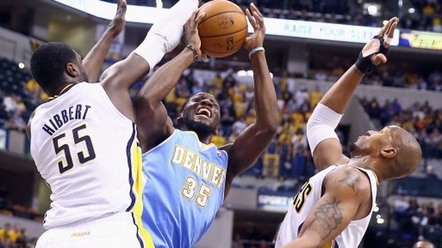 INDIANÁPOLIS - David West anotó 25 puntos y Roy Hibbert añadió 14, para que los Indiana Pacers pulverizaran el lunes 119-80 a los Denver Nuggets. Indiana dejó atrás una racha de cinco derrotas seguidas ante Denver. Superó a los Nuggets por primera ocasión desde que los apabulló por 31 puntos de diferencia en noviembre de 2010. Los Pacers (40-11) ostentan la mejor foja de la NBA, el mejor récord como locales (25-2) y la punta de la Conferencia del Este, con cuatro juegos de diferencia sobre Miami, el bicampeón defensor. También por Indiana, el argentino Luis Scola jugó 13 minutos, en los que sumó 11 puntos, ocho rebotes y una falta. Wilson Chandler anotó 17 puntos para encabezar a los Nuggets (24-26), que han perdido tres duelos al hilo. Denver jugó sin varios jugadores lesionados, incluido Andre Miller, Danilo Gallinari, JaVale McGee, Nate Robinson y Ty Lawson. Indiana tomó el control del partido con una racha de 21 puntos contra cinco, que colocó el marcador en 37-20 al comienzo del segundo periodo. Cerró la primera mitad con otra racha de 14-4 para poner el encuentro en 61-40. En el segundo medio, los Nuggets no pudieron acercarse a menos de 19 puntos.