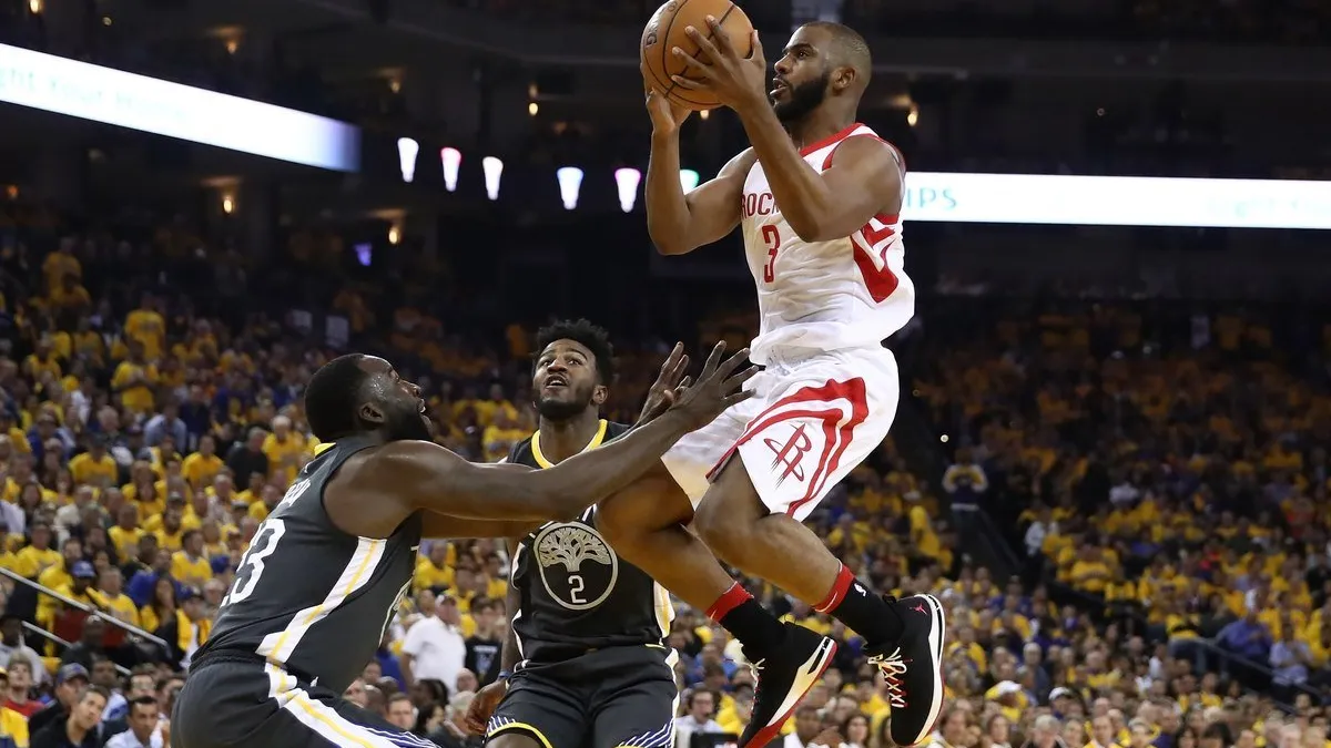 Un triple del armador Chris Paul faltando 2:30 minutos por jugar del segundo cuarto le dio la posibilidad a los Rockets de tomar el mando por primera vez en el partido (44-43).