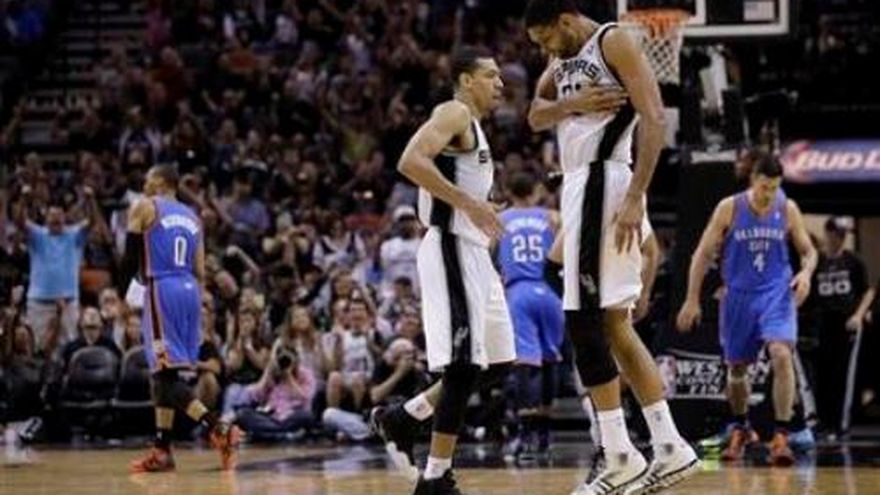 SAN ANTONIO, Texas (AP) -- Tony Parker anotó 22 puntos, Danny Green encestó siete triples y agregó 21 tantos y los Spurs de San Antonio se valieron de un dominante tercer cuarto para apalear el miércoles 112-77 al Thunder de Oklahoma City y tomar ventaja de 2-0 en las finales de la Conferencia Oeste. Tim Duncan agregó 14 unidades y 12 rebotes mientras que el argentino Manu Ginóbili y el francés Boris Diaw tuvieron 11 tantos cada uno saliendo de la banca. Los Spurs dejaron escapar una ventaja de 2-0 ante el Thunder en las finales de conferencia de 2012, pero en esta ocasión lucen preparados para abrirse camino a las Finales de la NBA. "Solo hicimos nuestro trabajo. Ganamos nuestros dos primeros juegos en casa, y estoy seguro que ellos van a casa diciendo que tienen que hacer lo mismo", dijo Parker. Por Oklahoma City, Kevin Durant y Russell Westbrook tuvieron 15 puntos cada uno, pero el ataque en el tercer cuarto los convirtió en meros espectadores, tomando en cuenta que mientras jugaron tampoco tuvieron gran aporte. El dueto estelar se combinó para encestar 13 de 40 intentos, incluyendo 4 de 14 en el tercer cuarto. El tercer juego de la serie es el domingo en Oklahoma City. Jugando sin Serge Ibaka y con dos días para hacer ajustes luego de perder el primer partido por 17 puntos, el Thunder no mejoró en nada. Parker y Green tuvieron ocho puntos cada uno en el tercer cuarto en el que San Antonio superó 33-18 a Oklahoma City. Fue un sorprendente giro para el Thunder, que tuvo un buen inicio. "Definitivamente no se siente bien y no debería", dijo el coach del Thunder, Scott Brooks. "Espero que no se sienta bien en el vestidor. No deberíamos sentirnos bien. Nos patearon el trasero. Pero tenemos una buena oportunidad de ir a casa y ganar el tercer juego". Oklahoma tuvo un inicio más agresivo en ambos lados de la cancha, especialmente a la defensiva. El juego físico sacó a los Spurs de ritmo y los frustró emocionalmente a inicios del juego. Duncan fue sancionado con una falta técnica a casi cinco minutos del final del primer cuarto tras quejarse cuando Ed Malloy decretó que le dio un golpe con la cadera a Durant. Pero el veterano de los Spurs tuvo poco de qué preocuparse, luego de que el Thunder apenas encestara cuatro de nueve intentos de tiro libre. El Thunder anotó cinco puntos en fila para abrir el juego, con Westbrook coronando el tempranero ataque con un triple para conseguir lo que sería su ventaja más amplia de la serie con 5-0. Sin embargo, San Antonio cerró la primera mitad con un ataque de 25-8. Y salieron del descanso para mantener el buen momento. Durant encestó sus primeros dos disparos de la segunda mitad, pero no volvió a hacerlo el resto del encuentro. Oklahoma City pasó sin anotar dos minutos a mediados del tercer cuarto, mientras San Antonio ampliaba su ventaja a 76-50 con un par de tiros libres de Duncan a falta de 6:20.