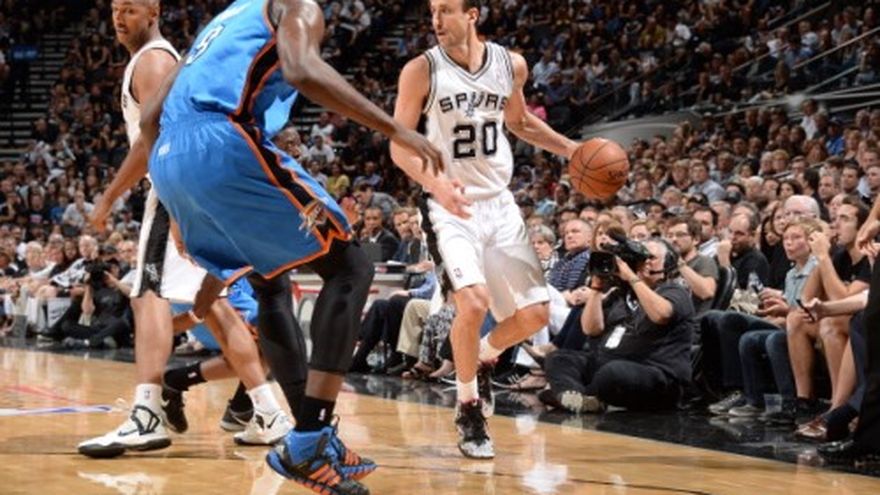SAN ANTONIO (AP) -- De regreso en casa, los Spurs fueron quienes propinaron una nueva paliza en esta serie. Ahora, pueden asegurarse el boleto a la final de la NBA en Oklahoma City, donde han sido la parte humillada en una extraña película por el título de la Conferencia del Oeste. "Es la serie más loca en la que he participado", dijo el veterano Tim Duncan, de San Antonio. Duncan anotó 22 puntos y capturó 12 rebotes, el argentino Manu Ginóbili añadió 19 unidades y los Spurs aplastaron el jueves 117-89 al Thunder para tomar una ventaja de 3-2 en la serie final del Oeste. El resultado siguió con la tónica de una serie en que los rivales se han alternado los papeles del Doctor Jeckyll y el Señor Hyde. La escuadra visitante ha sido apabullada en cada uno de los cinco encuentros. El sexto está programado para el sábado en Oklahoma City. "No tengo idea, sinceramente", dijo el entrenador de los Spurs, Gregg Popovich, cuando se le preguntó el motivo de la gran disparidad en cada uno de los encuentros. "Creo que cada partido ha sido como un animal distinto, de verdad. Hablamos con nuestro equipo sobre esto todo el tiempo. No tenemos idea de qué va a ocurrir, de cuál equipo va a ganar, a jugar aletargado o a controlar el balón". Kawhi Leonard y Danny Green aportaron 14 tantos cada uno, el francés Boris Diaw añadió 13 y su compatriota Tony Parker embocó 12 por los Spurs, que están a un triunfo de volver a la final de la NBA, luego de caer en siete partidos ante Miami, el año pasado. Ginóbili jugó 21:10 minutos, en los que agregó cuatro rebotes, seis asistencias y dos faltas. El brasileño Tiago Splitter registró seis puntos, dos rebotes, una asistencia y tres faltas en 11:45 minutos. Kevin Durant anotó 25 puntos, pero Russell Westbrook sumó apenas 21, además de repartir siete asistencias, luego de totalizar 40 unidades y 10 pases para enceste en el cuarto partido. Los Spurs recuperaron el estilo de juego que les permitió ganar los primeros dos duelos de la serie por 52 puntos en forma combinada. "Les dimos precisamente lo que querían", reconoció el técnico de Oklahoma City, Scott Brooks. "Ellos pudieron driblar, llegar a la línea de triples y a la de tiros libres". En materia de triples, los Spurs acertaron 13 de 26, y superaron al Thunder por 48 rebotes contra 35. Asimismo, San Antonio limitó a Oklahoma City a cuatro rompimientos rápidos, después de permitir 21 en el cuarto enfrentamiento.
