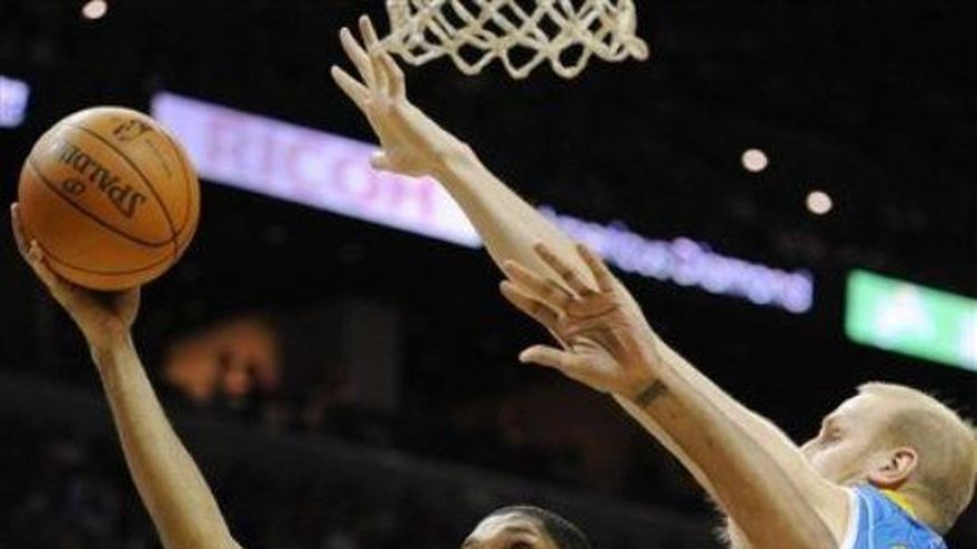 Los Spurs de San Antonio escalaron hasta la cima de la clasificación de la Conferencia del Oeste con su aplastante victoria sobre el equipo más débil de la misma. Con 19 puntos, Tim Duncan fue el máximo anotador para San Antonio, que derrotó el viernes en la noche por 128-103 a los Hornets de Nueva Orleáns y logró su décima victoria consecutiva. El argentino Manu Ginóbili y Patty Mills anotaron 14 puntos cada uno, y Stephen Jackson y Gary Neal consiguieron 13 tantos cada cual para los Spurs, que habían logrado 72 unidades en la primera mitad y arrasaron con la serie de cuatro partidos de la temporada. La victoria, aparejada con la derrota de Oklahoma City ante Indiana, por 103 a 98, puso a los Spurs adelante del Thunder en el porcentaje por el primer lugar en la Conferencia del Oeste.