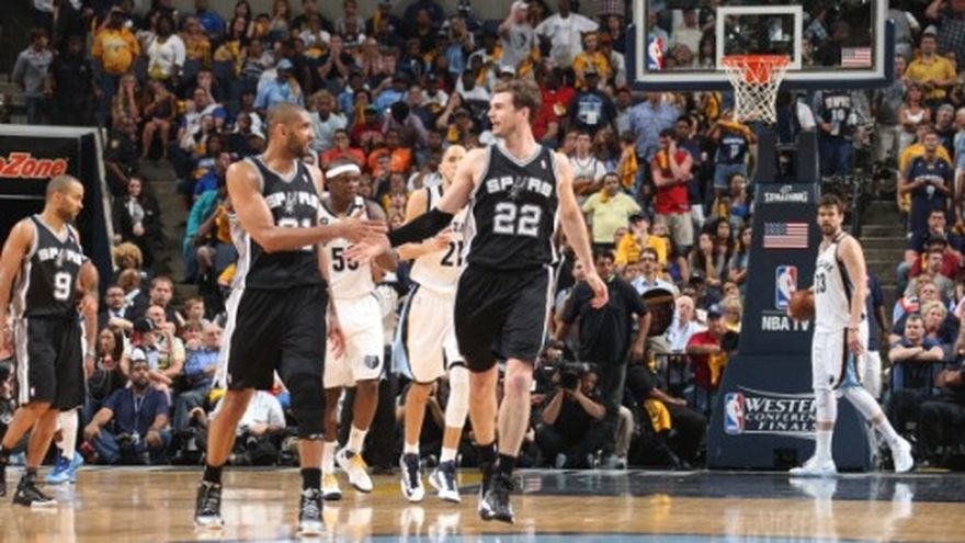 Tim Duncan anotó los primeros cinco puntos del tiempo extra y los Spurs de San Antonio remontaron una desventaja de 18 puntos para vencer a los Grizzlies de Memphis por 104-93 la noche del sábado y quedar a una victoria de las finales de la NBA. Los Spurs se hicieron de una ventaja de 3-0 en el tercer partido de la final de la Conferencia del Oeste y han ganado cinco partidos consecutivos en lo que va de la postemporada. Con el recuerdo de haber desperdiciado una ventaja de 2-0 el año pasado en las finales del Oeste ante Oklahoma City, cuando perdieron los siguientes cuatro partidos, los Spurs dejaron atrás el juego descuidado con el que arrancaron y empujaron a los jóvenes Grizzlies al borde de la eliminación en la primera final de la conferencia del Oeste jugada en Memphis. San Antonio, que no dominó el juego hasta la apertura del cuarto trimestre, podría concluir la serie el lunes en Memphis.
