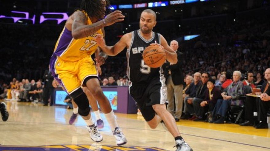 Tony Parker terminó con 24 puntos y seis asistencias, Kawhi Leonard agregó 15 puntos y 11 rebotes, y los Spurs de San Antonio sobrevivieron a la ausencia de Tim Duncan para vencer 91-85 a los Lakers de Los Ángeles el viernes. Parker rompió el desempate con un disparo a 2:13 minutos por jugar, y el argentino Emanuel Ginóbili coronó su actuación como suplente con una crucial jugada defensiva y una clavada en los segundos finales del primer juego de los Spurs como locales. Ginóbili jugó 27:08 minutos sumando 20 puntos, tres rebotes y tres asistencias. Duncan no jugó por un problema de pecho tras la victoria del miércoles en el primer juego de la campaña, ante Memphis. El español Pau Gasol aportó 20 puntos y 11 rebotes en 29:06 minutos por los Lakers, que terminaron su serie de inicio de temporada de tres juegos en cuatro días con dos derrotas después de vencer a los Clippers.