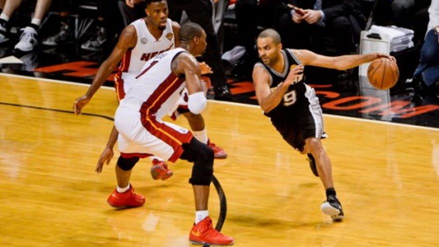 Los Spurs de San Antonio volvieron a la serie final de la NBA de la misma manera como la dejaron, con una victoria sobre LeBron James. El francés Tony Parker embocó un tiro a cinco metros del aro, cuando restaban 5,2 segundos del encuentro, para totalizar 21 puntos, y los Spurs dieron la sorpresa en Miami, al vencer el jueves 92-88 al Heat, en un emocionante primer partido de la final. "El tiro de Tony es una de esas cosas que a veces pasan", dijo el argentino Manu Ginóbili. "Tuvimos suerte hoy". Tim Duncan sumó 20 puntos, 14 rebotes y tres bloqueos, mientras que Ginóbili aportó 13 puntos a la causa de los Spurs, que están en la final por primera vez desde 2007 y buscan el quinto campeonato en su historia. Ginóbili sumó también tres asistencias y dos faltas, en una actuación de 29:31 minutos. LeBron James tuvo 18 puntos, el mismo número de rebotes y 10 asistencias para el décimo "triple doble" en postemporada durante su carrera. Dwyane Wade anotó 17 unidades por el Heat, el campeón defensor. Sin embargo, James acertó sólo siete de 16 disparos, su menor producción ofensiva en lo que va de los playoffs. Kawhi Leonard merece los elogios por ello. El alero incomodó a James en el perímetro toda la noche. El segundo encuentro está previsto para la noche del domingo en Miami. Se suponía que estos Spurs estarían faltos de práctica después de nueve días de inactividad y Duncan mostró ciertas señales de ello al inicio, al fallar sus primeros cinco tiros de campo. Pero una vez que comenzaron a activarse esos viejos huesos de 37 años, los Spurs mostraron que esta serie no se trata simplemente de una coronación del Rey James. "No importa cómo nos llamen: viejos, veteranos, como sea, aquí estamos", dijo Duncan. Los Spurs estuvieron abajo en el marcador durante la mayor parte de los tres primeros cuartos, pero Duncan impidió que el Heat se separara demasiado al controlar la pintura y mover el balón. Dos tiros libres de Parker dieron a San Antonio una ventaja de 77-76 en el cuarto período y Duncan aumentó la ventaja a 83-79 cuando restaban 5:30 minutos por jugar. James anotó en dos posesiones seguidas de Miami y Ray Allen encestó tres tiros libres para poner el marcador en 88-86 a favor de los Spurs con 1:28 minutos en el reloj. Duncan anotó dos tiros libres y Chris Bosh falló un tiro de tres puntos sin enfrentar presión defensiva en la otra punta, mientras que Parker terminó con el Heat mediante un disparo al final del encuentro. Leonard registró 10 puntos y 10 rebotes en un notable debut en la final de la NBA. Luego de haber disputado siete partidos en la final de la Conferencia del Este contra los Pacers de Indiana, el Heat claramente disfrutó la apertura de la cancha en este juego, y anotó 18 de sus primeros 30 tiros. Pero la defensa de los Spurs fue mejorando poco a poco y San Antonio contuvo a Miami en siete puntos en los primeros 8:12 minutos del último cuarto. "Francamente, creo que estábamos un poco fatigados en el cuarto período", dijo Wade. "Parecíamos un equipo que acababa de concluir una serie de siete partidos".