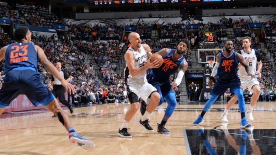 La actuación de Ginóbili resultó clave para que los Spurs derrotaran a los Thunder, rivales directos por un puesto en la postemporada en la Conferencia Oeste.