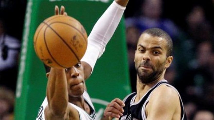 Tim Duncan anotó 10 puntos y capturó 16 rebotes y los Spurs de San Antonio se recuperaron después de dilapidar una ventaja de 17 puntos en la primera mitad para derrotar el miércoles 87-86 a los Celtics de Boston para su novena victoria consecutiva. Duncan también detuvo a Paul Pierce en la última jugada, en la que lo forzó a un lanzamiento mientras caía que rebotó contra el aro. Danny Green encestó 14 puntos, y Gary Neal logró 13, incluyendo un triple cuando faltaban dos minutos que le dio la ventaja a los Spurs después de que Boston había remontado con una racha de 13-4 para ponerse adelante en el marcador. Rajon Rondo anotó 17 puntos y repartió 11 asistencias para Boston, que ha ganado cinco juegos al hilo. Por los Spurs, el argentino Emanuel Ginóbili jugó 24:46 minutos en los que embocó dos de sus seis intentos y uno de uno en tiros libres para sumar cinco puntos. También capturó dos rebotes. El brasileño Thiago Splitter estuvo 14:21 minutos en cancha en los que capturó seis rebotes y encestó cuatro de sus seis lanzamientos para sumar ocho puntos.