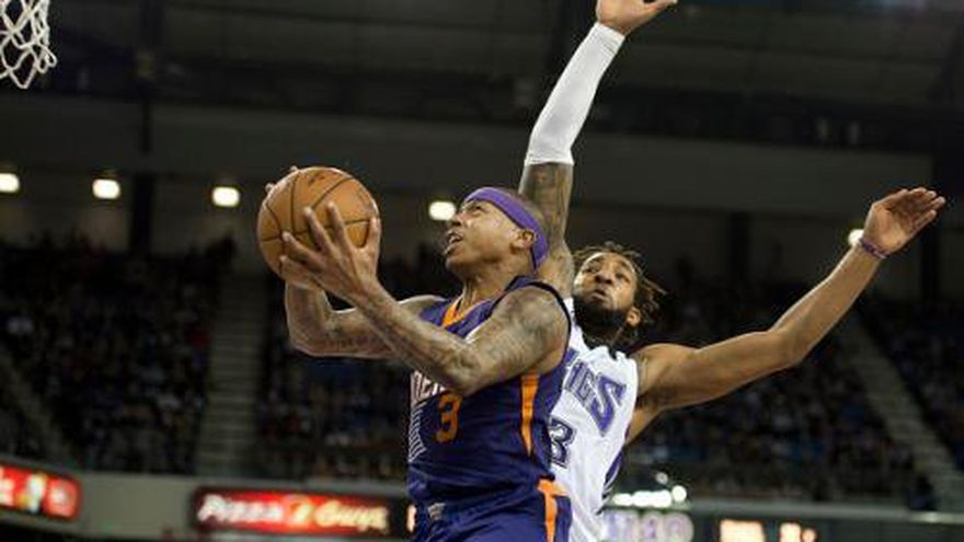 SACRAMENTO, California, EE.UU. (AP) -- Marcus Morris tuvo 20 puntos y nueve rebotes, Isaiah Tomas coronó la carrera decisiva ante su ex equipo y los Suns de Phoenix vencieron el viernes 115-106 a unos mermados Kings de Sacramento para su quinto triunfo en fila. En su primer juego de regreso en Sacramento, Thomas comandó un ataque de 18-7 al inicio del último cuarto para darle a Phoenix ventaja de 15. El ex consentido de la afición de los Kings terminó con 17 tantos, cinco asistencias y tres rebotes en apenas 29 minutos de acción. Darren Collison anotó 19 puntos, y Rudy Gay agregó 16 unidades y cinco asistencias por los Kings, que extrañaron la presencia interior de DeMarcus Cousins. El estelar pivote se perdió el juego debido a una enfermedad estomacal. El técnico interino, Tyrone Corbin dijo que la enfermedad no está relacionada con la meningitis viral que ausentó a Cousins por 10 juegos anteriormente.
