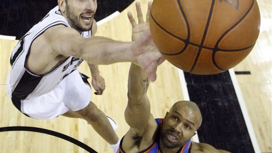 Gregg Popovich imploró a los Spurs de San Antonio que adoptaran una actitud incluso ruda para tomar el control de las finales de la Conferencia del Oeste. El Thunder de Oklahoma tendrá que mostrarse aún más duro si quiere recuperarse en la serie. Oklahoma City tuvo problemas para contener el ataque de San Antonio, que ha sido poderoso durante una racha de 20 victorias consecutivas. Es la racha más larga de triunfos que ha conseguido un equipo de la NBA entre el final de la campaña regular y los playoffs. Con una desventaja de 0-2, el Thunder disputará el tercer partido el jueves, en el Cheasapeake Energy Arena. Quizás el equipo haya encontrado algo que funciona bien, cuando trató de remontar una desventaja de 22 puntos en el tercer periodo del segundo encuentro. Aceleraron el ritmo e hicieron más contacto físico con sus rivales. Ambos equipos terminaron yendo continuamente a la línea de castigo, luego que la desventaja se redujo a seis puntos. Los Spurs lograron resolver el partido e imponerse por 120-111. "Somos un equipo que hace contacto físico. Tenemos que jugar así", dijo el miércoles entrenador del Thunder, Scott Brooks. "Si jugamos de manera que el partido no se interrumpa tanto podemos vencer a algunos equipos, pero no tenemos nuestro mejor desempeño si no buscamos el contacto a la defensiva". "Incluso a la ofensiva lo somos. Somos agresivos, hacemos estupendas marcaciones y atacamos la canasta". Hasta ahora, los Spurs han lucido más que el Thunder. Anotaron 39 puntos en el cuarto periodo para remontar en el primer partido. En el segundo, acertaron el 63% de sus tiros en jugada y el 64% de sus triples, para tomar su ventaja más amplia en el duelo. Ello puso a Brooks en una situación inusitada. Debió preguntarse si su equipo estaba jugando con tanta intensidad como puede hacerlo. Específicamente, destacó que no fue suficientemente buena la defensiva contra los triples. "Tenemos que jugar con el máximo esfuerzo en cada acción y en toda la jugada. Si no hacemos eso, les daremos muchas oportunidades de anotar, porque tienen el mejor equipo en los pases", dijo Brooks. "Ellos no dudan. Hacen las jugadas, son constantes y son rápidos. Es cierto sin embargo que uno puede jugar muy bien a la defensiva y aún así ellos van a encestar algunos disparos difíciles".