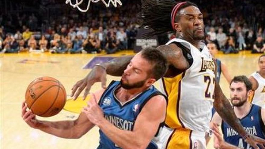 Kevin Martin anotó el domingo 27 puntos, Kevin Love añadió 25, incluidos 18 en una ofensiva feroz de 47 unidades de los Timberwolves en el primer periodo, y Minnesota venció por fin a los Lakers, por 113-90, después de caer ante Los Ángeles en 22 encuentros consecutivos. El español Ricky Rubio totalizó 12 puntos, 14 asistencias y 10 rebotes por los Timberwolves, que no derrotaban a los Lakers desde el 6 de marzo de 2007. Minnesota tomó una ventaja de 28 puntos, tras el periodo con el ataque más productivo en la historia de la franquicia. Durante el resto de la noche, los Wolves administraron la cómoda ventaja para triunfar en el Staples Center por primera ocasión desde el 2 de diciembre de 2005. También por Minnesota, el puertorriqueño José Juan Barea jugó 18:59 minutos, en los que sumó nueve puntos, tres rebotes, tres asistencias y tres faltas. El canadiense Steve Nash jugó 13 minutos, antes de ir al banquillo por una lesión de espalda.