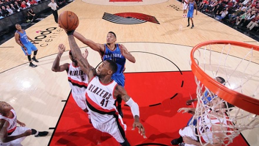 PORTLAND, Oregon, EE.UU. (AP) -- LaMarcus Aldridge anotó 27 puntos y los Portland Trail Blazers ofrecieron un contundente último cuarto el miércoles por la noche para imponerse 106-89 a los Thunder de Oklahoma City, que se han visto golpeados por las lesiones. En el primer partido de la temporada de NBA para ambos equipos, los Thunder sólo tenían nueve jugadores disponibles. La ausencia más señalada era la del MVP de la NBA, Kevin Durant, que fue operado de un hueso roto en el pie derecho este mes y estará fuera de la cancha hasta diciembre. Russel Wrestbrook recogió el testigo con 38 puntos, incluyendo 26 en la primera mitad. Portland superó en puntos a los Thunder por 31-12 en el último cuarto del encuentro. Con 14 victorias consecutivas en sus comienzos de temporada, los Blazers batieron el récord marcado por los Celtics de Boston entre 1979 y 1992. Por los Thunder, el congoleño nacionalizado español Serge Ibaka aportó 10 puntos, 8 rebotes y dos asistencias.