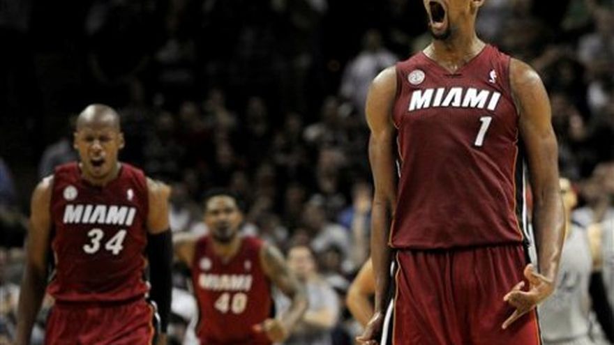 El frecuentemente miembro olvidado de los "Tres grandes" de Miami, Chris Bosh, compensó las ausencias de LeBron James y Dwyane Wade para conseguir que el Heat lograra el domingo una gran victoria y se acercara a la posibilidad de asegurar la ventaja de jugar como locales durante los playoffs de la NBA. Bosh anotó 23 puntos, incluido el triple de la victoria con 1,9 segundos por jugarse, para que el Heat de Miami venciera por 88-86 a los Spurs de San Antonio. James, Wade y Mario Chalmers debieron presenciar el partido desde los vestidores, lesionados. "Somos los campeones defensores, no importa a quién pongamos ahí fuera", dijo Bosh. "Seguimos siendo el Heat de Miami. Creemos en nosotros mismos. Cada uno de estos chicos es un profesional. Jugamos grandes papeles en otras ciudades, pero nos unimos y aceptamos tener papeles menos protagónicos para ganar un campeonato aquí. Todavía podemos sacarle jugo a eso", añadió. Ray Allen sumó 14 tantos, Norris Cole otros 13 y Mike Miller añadió 12 para Miami (58-15), que barrió la serie contra San Antonio (55-18). Además de asegurar a su favor el criterio de desempate contra San Antonio, el Heat le sacó cuatro partidos de ventaja a los Spurs, con nueve por jugar, para mantener la mejor foja de la liga. Miami venció a San Antonio 105-100 el 29 de noviembre, cuando los Spurs optaron por dejar descansar a Tim Duncan, Tony Parker, Manu Ginóbili y Danny Green. Todos menos Ginóbili (lesionado por tendón tenso de la corva derecha) jugaron el domingo. Tim Duncan aportó 17 puntos y 12 rebotes, mientras que Kawhi Leonard embocó otros 17 tantos y recuperó 11 tableros para los Spurs, que vieron interrumpirse una racha de siete victorias en casa. Green y Parker aportaron 12 tantos cada uno y Stephen Jackson otros 11. El brasileño Tiago Splitter encestó siete puntos, recuperó 10 tableros y repartió dos asistencias en 28 minutos en cancha para San Antonio. "No hay duda, fue una victoria gratificante", dijo el entrenador de Miami, Erik Spoelstra. "Se trató de jugar contra un gran equipo, un equipo de élite. Hablamos de llegar con el orgullo de ser el Heat de Miami... Todos nuestros chicos han demostrado el orgullo de portar el nombre en la camiseta, en la parte delantera de la camiseta". En Nueva York, Carmelo Anthony tuvo 24 puntos y 10 rebotes y los Knicks de Nueva York extendieron su racha ganadora a ocho partidos y el domingo dieron un paso más para quitar el título divisional a Boston al vencer a los Celtics 108-89. Los Knicks vencieron a los Celtics por segunda vez en esta semana y ganaron la serie de temporada por primera vez desde 2003-04, cuando también se impusieron 3-1 ante Boston. Cuando estaban por concretar su segunda victoria sobre los Celtics esta semana, el lesionado delantero Rasheed Wallace dibujó un número "50" enorme en el tablero de su vestuario, desafiando al equipo a luchar por una temporada de 50 victorias. "Cincuenta victorias es siempre todo un reto por lograr en esta liga, ganar una división es siempre algo importante por lograr, un gran logro en esta liga. Así que dos cosas son definitivamente factibles. Simplemente tenemos que mantenernos en movimiento y lo haremos ", dijo Anthony. Nueva York está nuevamente empatado con Indiana en la contienda por el segundo sitio en la Conferencia Oeste, que actualmente significa un encuentro de eliminatoria con los Celtics. Jeff Green tuvo 27 puntos y Paul Pierce 24 puntos y 15 rebotes, mientras los Celtics vieron interrumpida su racha de dos partidos ganados. Boston ha ganado los últimos cinco títulos de la División del Atlántico desde que contrató a Kevin Garnett y Ray Allen en el verano de 2007. Los Knicks no han ganado títulos divisionales desde la temporada 1993-94. En otros resultados de la jornada: Nueva Orleans 112, Cleveland 92; Washington 109, Toronto 92; y Chicago 95, Detroit 94.f
