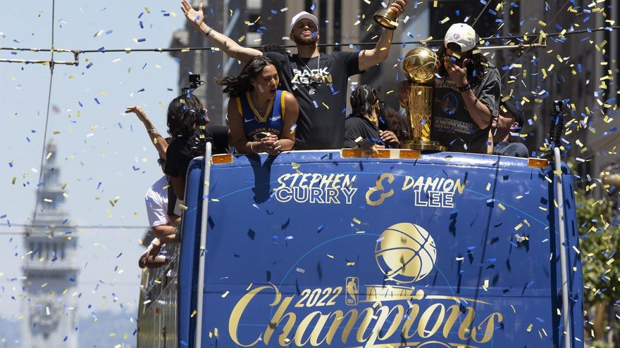 Decenas de miles de hinchas salieron a las calles de San Francisco el lunes para saludar a los Golden State Warriors, que celebraron con un recorrido por la cuidad en autobuses sin techo la conquista del cuarto título de la NBA.