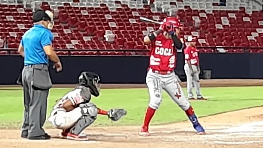 Acción del partido entre los equipos de béisbol juvenil de Coclé y Panamá Metro / Leña Roja (Instagram)