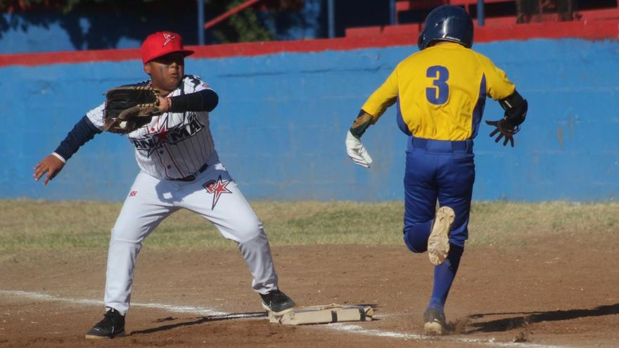 Heitor Peres pega sencillo a la segunda base. Pedro Pereira anota